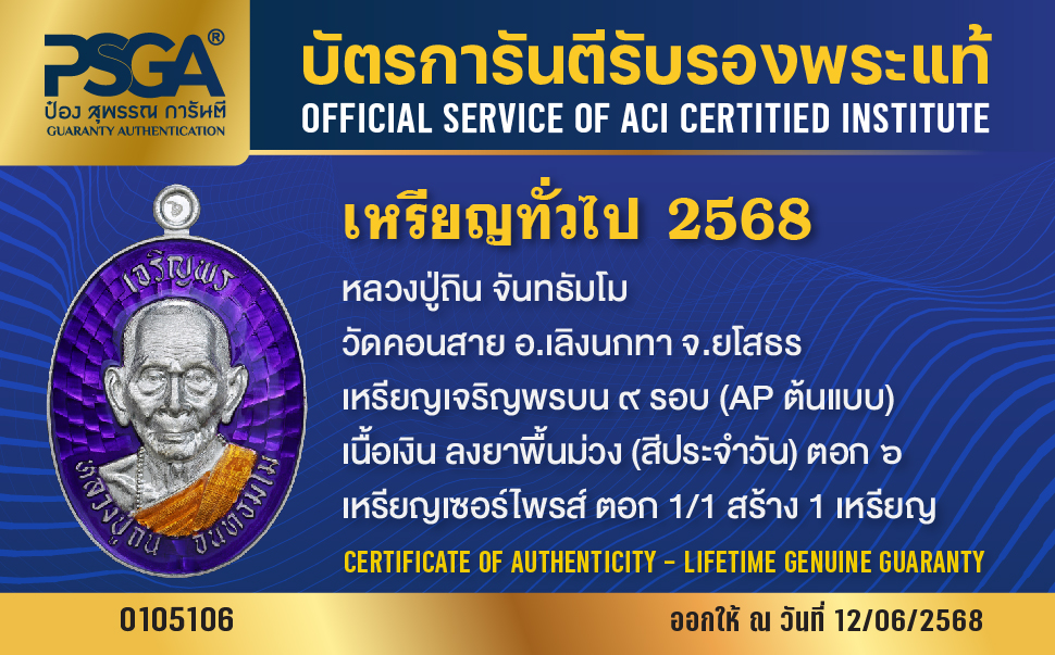 | ประเภท / Category | PSGA บัตรการันตีรับรองพระแท้ |