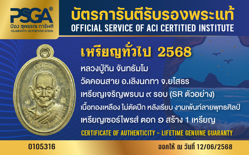 | ประเภท / Category | PSGA บัตรการันตีรับรองพระแท้ |