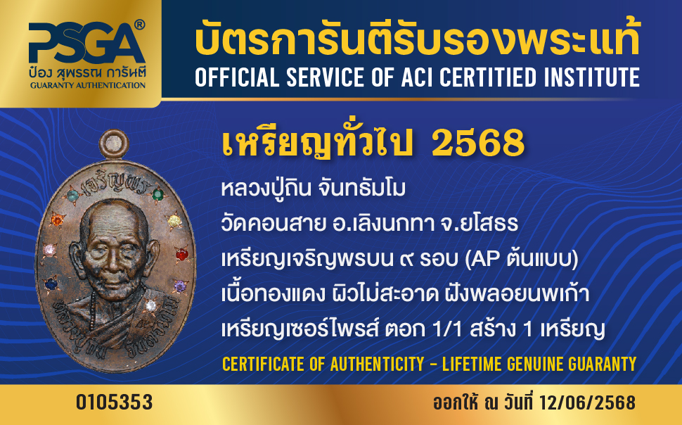 | ประเภท / Category | PSGA บัตรการันตีรับรองพระแท้ |