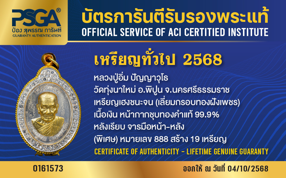 ประเภท / Category | PSGA บัตรการันตีรับรองพระแท้ |