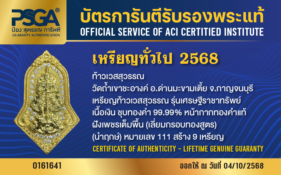 ประเภท / Category | PSGA บัตรการันตีรับรองพระแท้ |