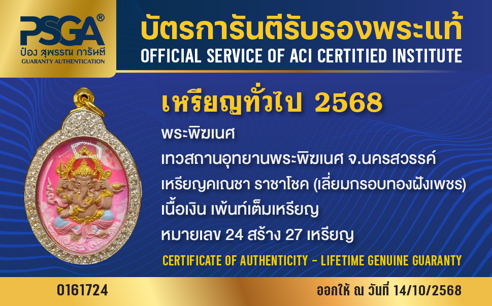 | ประเภท / Category | PSGA บัตรการันตีรับรองพระแท้ |