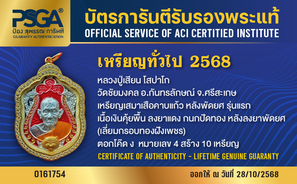 | ประเภท / Category | PSGA บัตรการันตีรับรองพระแท้ |