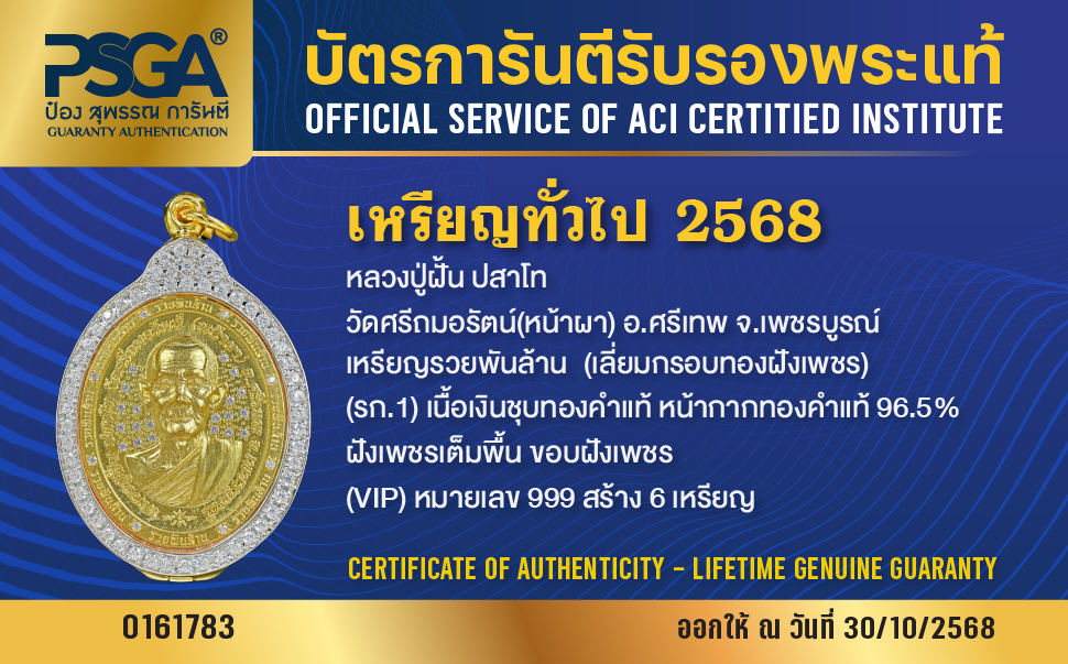 | ประเภท / Category | PSGA บัตรการันตีรับรองพระแท้ |