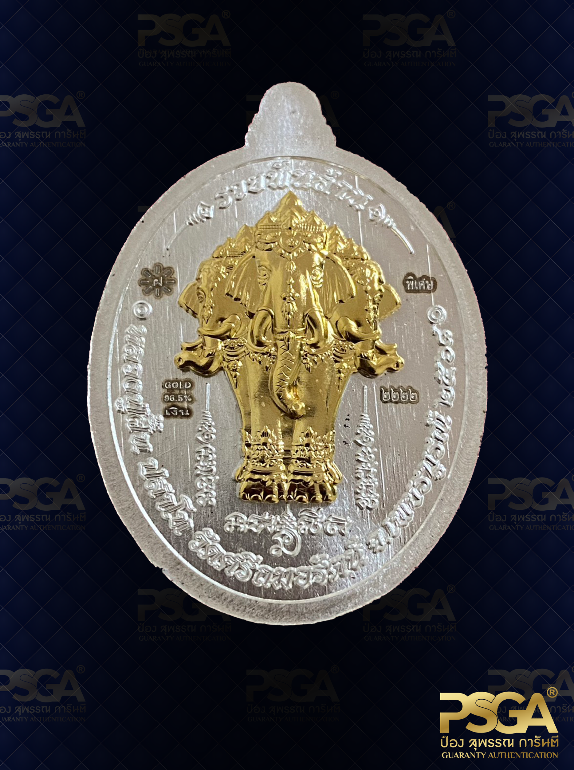 | เนื้อโลหะ / Composition | เนื้อเงิน หน้ากากทองคำแท้ 96.5% ฝังเพชรเต็มฆังฏิ พื้นเหรียญปิดแผ่นทองคำแท้ หน้ากากช้างชุบทองคำแท้ |