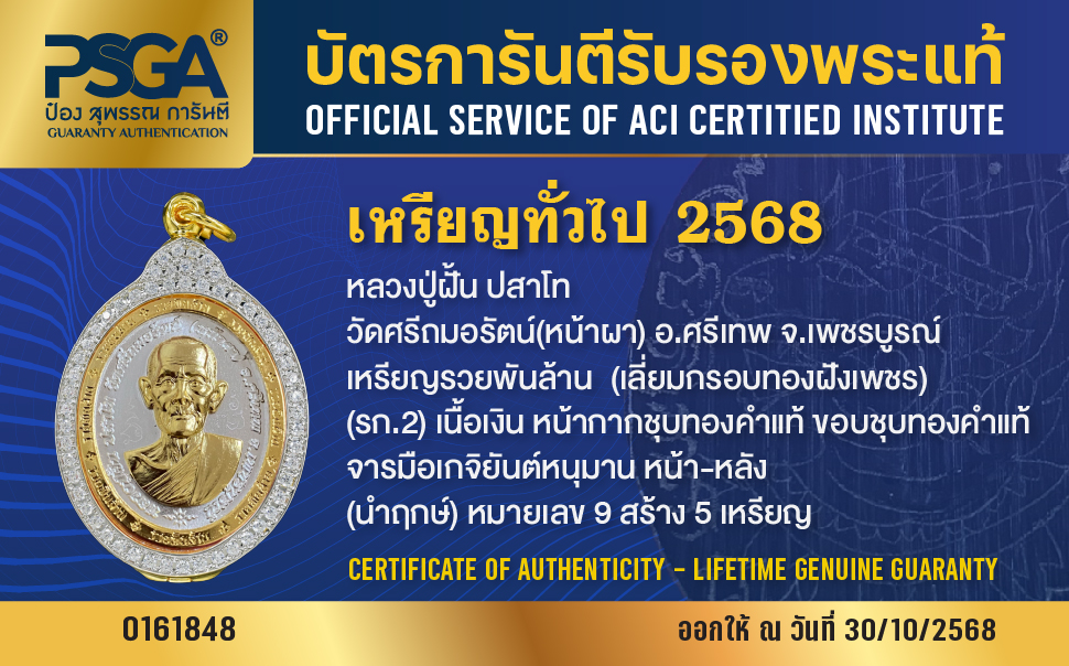 | ประเภท / Category | PSGA บัตรการันตีรับรองพระแท้ |
