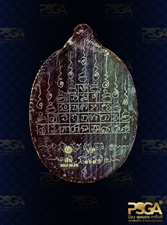 | เนื้อโลหะ / Composition | เนื้อเงิน หน้ากากทองคำแท้ 96.5% ฝังเพชรเต็มพื้น ขอบนพเก้า หลังจารมือเกจิ |