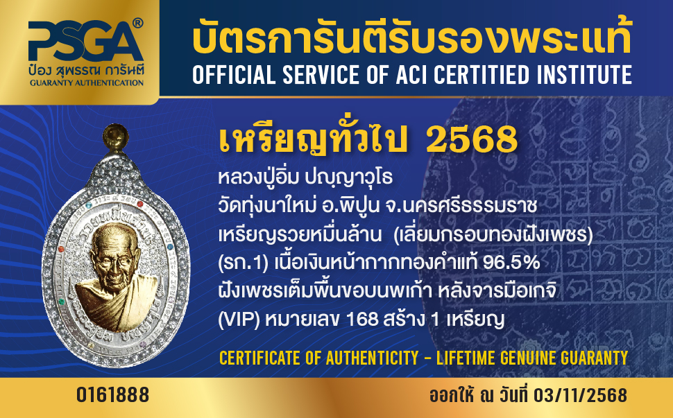 | ประเภท / Category | PSGA บัตรการันตีรับรองพระแท้ |