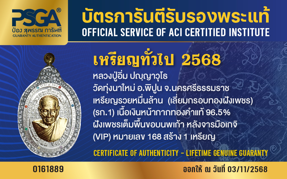 | ประเภท / Category | PSGA บัตรการันตีรับรองพระแท้ |
