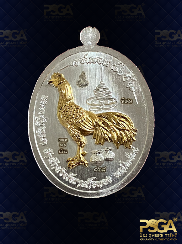 | เนื้อโลหะ / Composition | เนื้อเงิน หน้ากากทองคำแท้ 96.5% พื้นเหรียญติดแผ่นทองคำแท้ หน้ากากไก่ชุบทองคำแท้ |