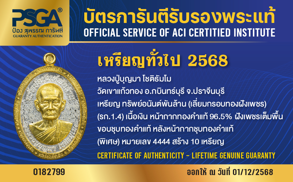 | ประเภท / Category | PSGA บัตรการันตีรับรองพระแท้ |