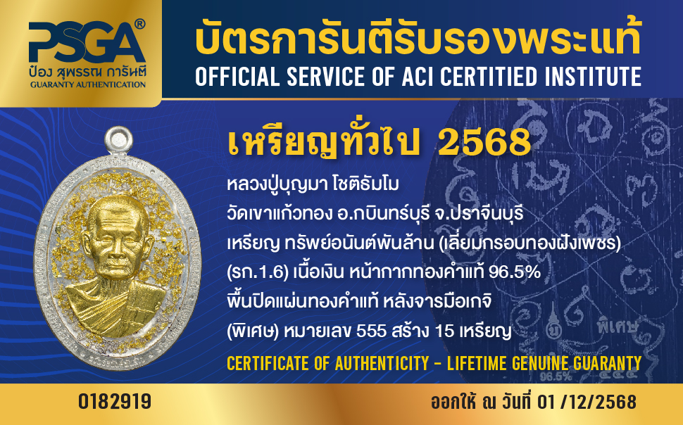 | ประเภท / Category | PSGA บัตรการันตีรับรองพระแท้ |