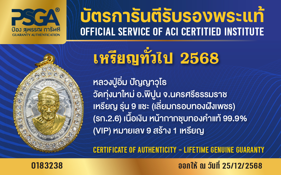 | ประเภท / Category | PSGA บัตรการันตีรับรองพระแท้ |