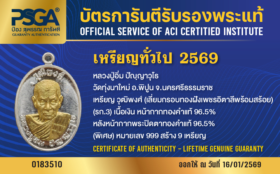 | ประเภท / Category | PSGA บัตรการันตีรับรองพระแท้ |