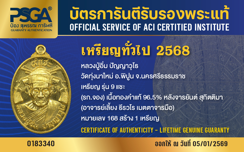 | ประเภท / Category | PSGA บัตรการันตีรับรองพระแท้ |