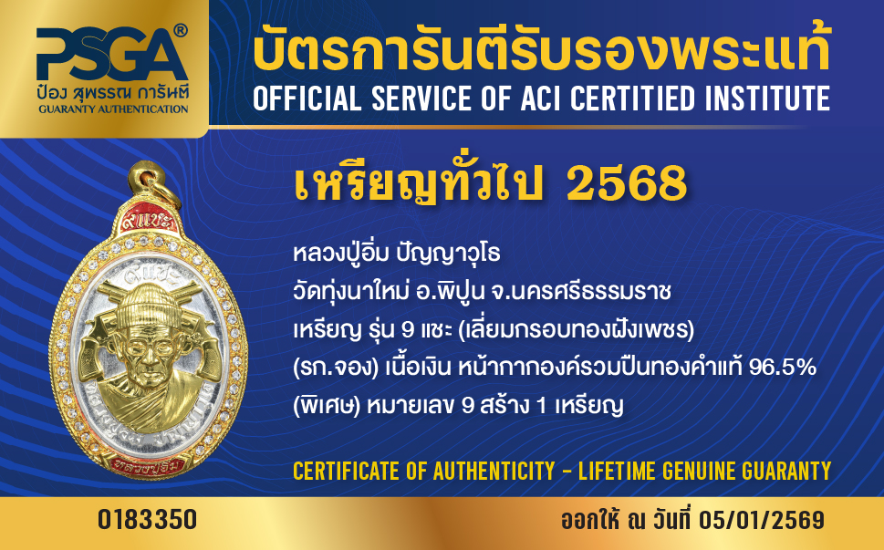 | ประเภท / Category | PSGA บัตรการันตีรับรองพระแท้ |