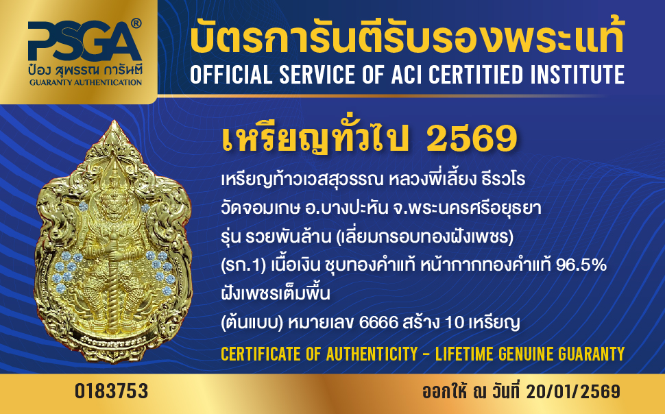 | ประเภท / Category | PSGA บัตรการันตีรับรองพระแท้ |