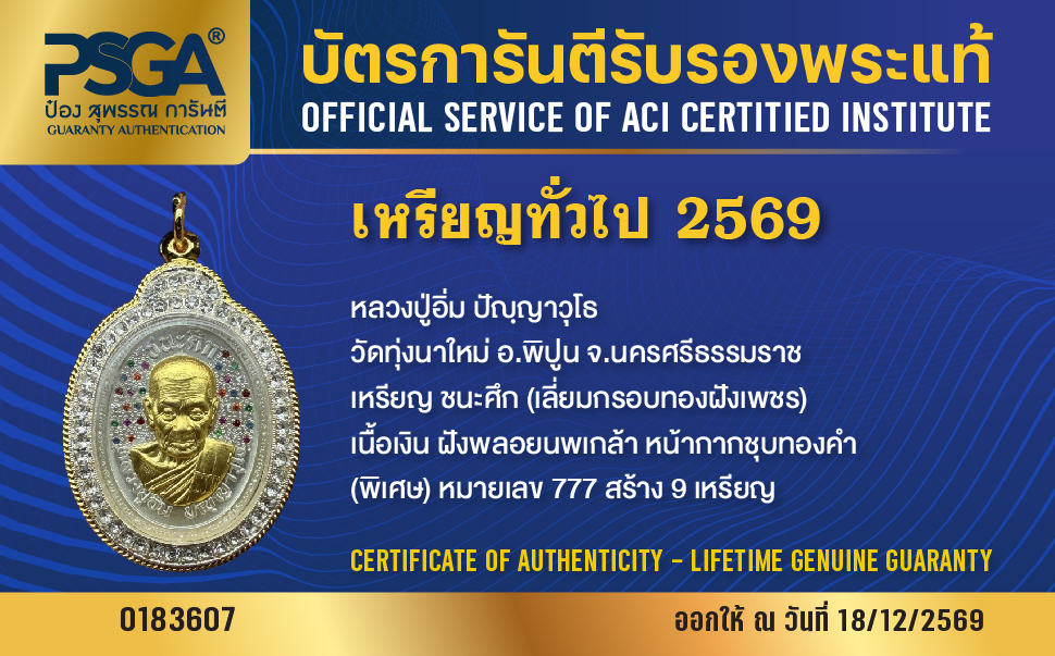 | ประเภท / Category | PSGA บัตรการันตีรับรองพระแท้ |