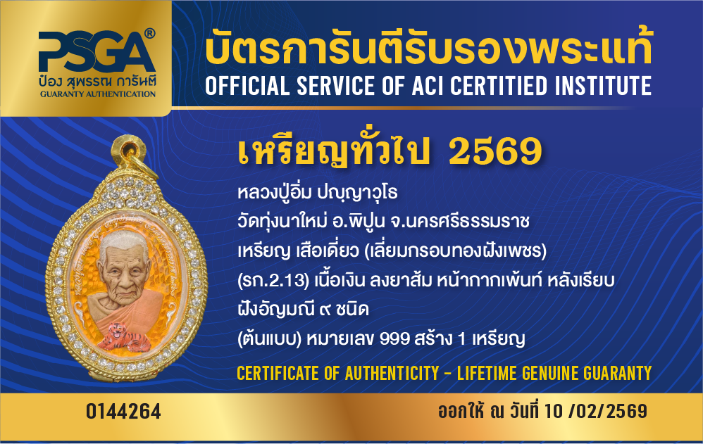 | ประเภท / Category | PSGA บัตรการันตีรับรองพระแท้ |