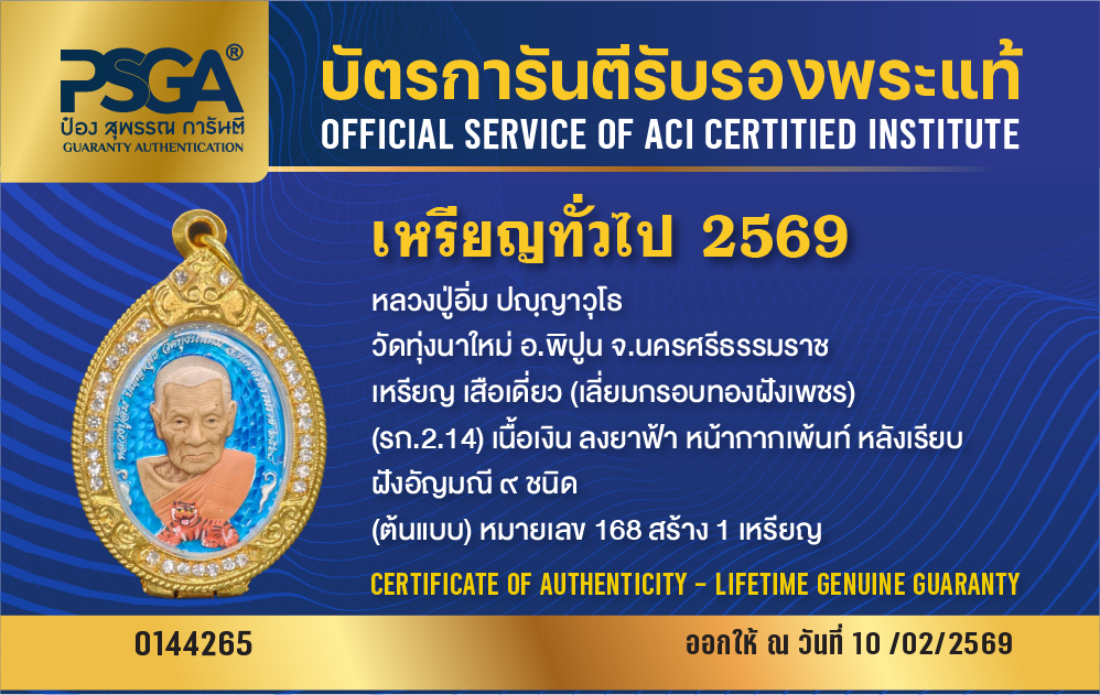 | ประเภท / Category | PSGA บัตรการันตีรับรองพระแท้ |