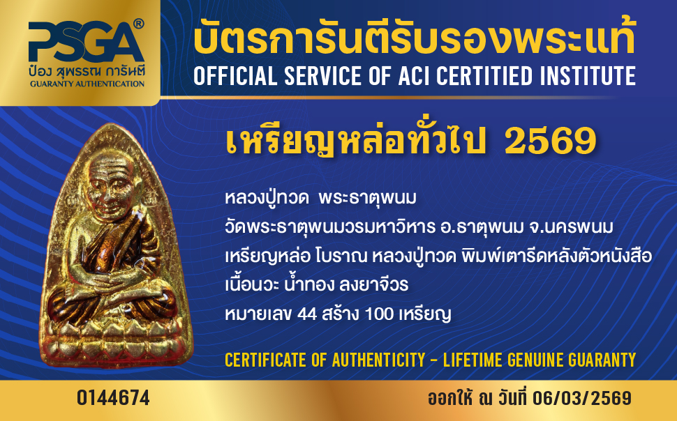| ประเภท / Category | PSGA บัตรการันตีรับรองพระแท้ |