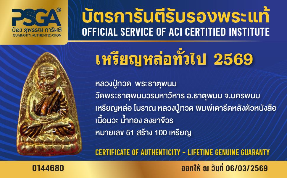 | ประเภท / Category | PSGA บัตรการันตีรับรองพระแท้ |