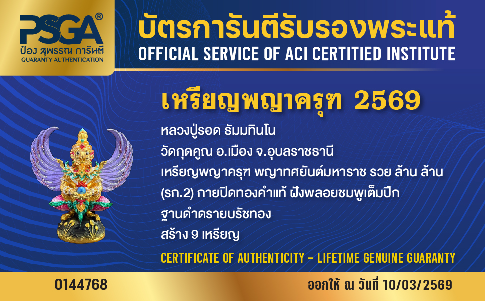 | ประเภท / Category | PSGA บัตรการันตีรับรองพระแท้ |