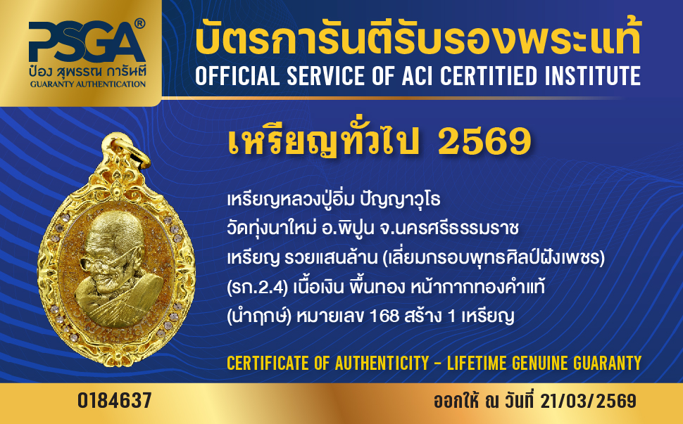 | ประเภท / Category | PSGA บัตรการันตีรับรองพระแท้ |