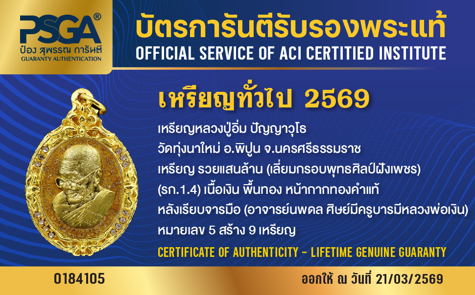 | ประเภท / Category | PSGA บัตรการันตีรับรองพระแท้ |