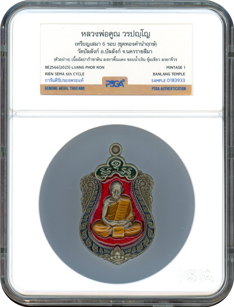 | เนื้อโลหะ / Composition | เนื้ออัลปาก้า ลงยาพื้นแดง ขอบน้ำเงิน ซุ้มเขียว ลงยาจีวร |
