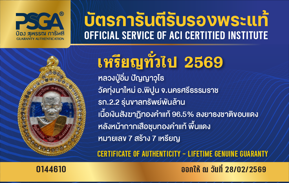 | ประเภท / Category | PSGA บัตรการันตีรับรองพระแท้ |