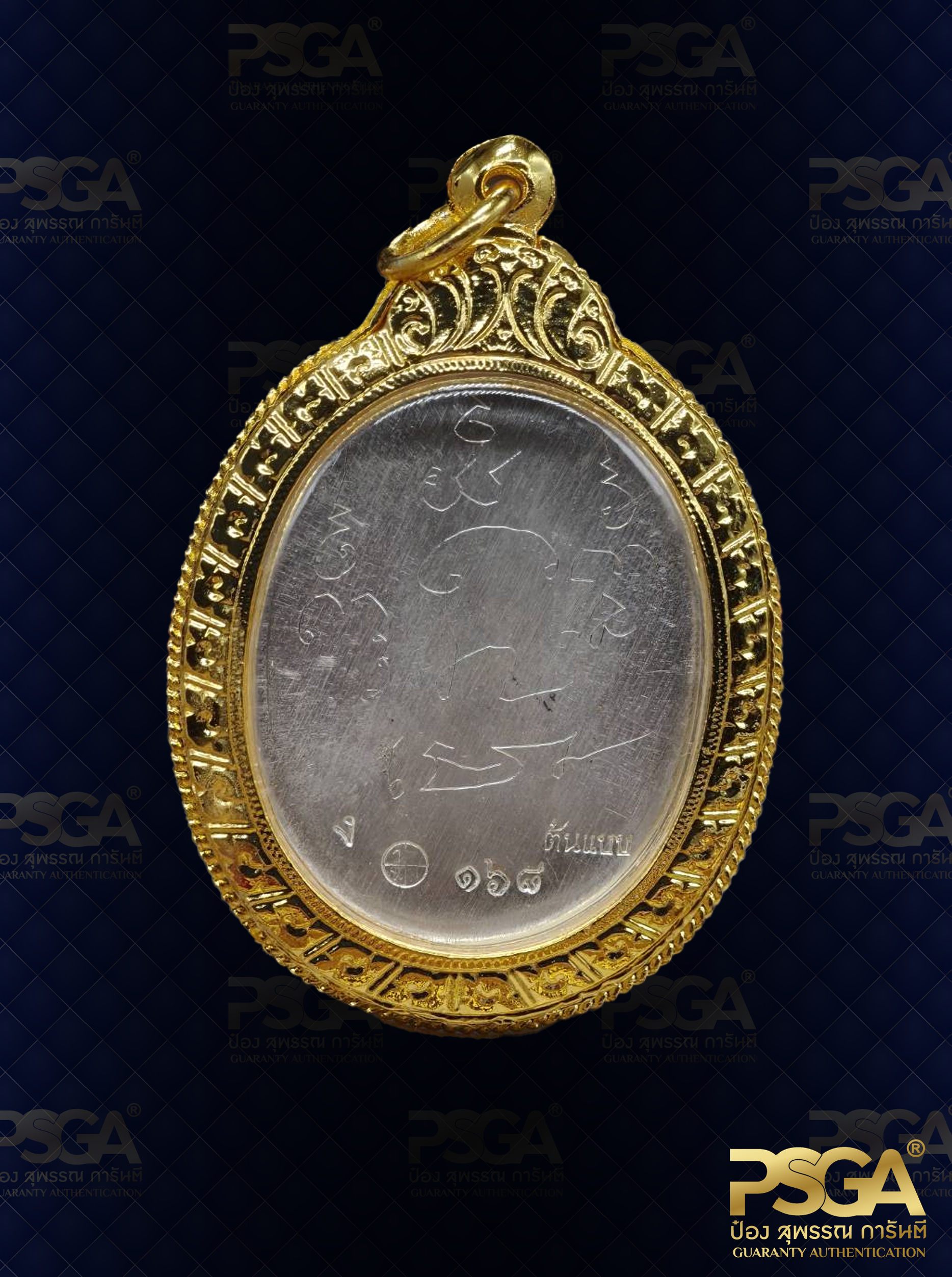 | เนื้อโลหะ / Composition | เนื้อเงิน หลังเรียบจารมือ หน้ากากทองคำแท้ 96.5% ฝังเพชรเต็มพื้น ฝังเพชรเต็มสังฆาฏิ |