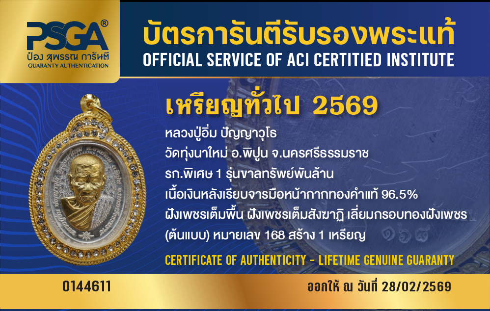 | ประเภท / Category | PSGA บัตรการันตีรับรองพระแท้ |