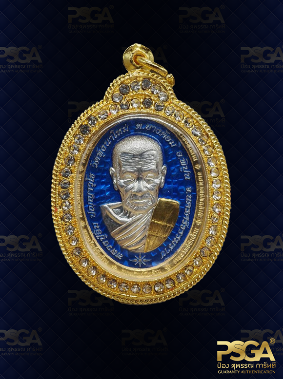 | เนื้อโลหะ / Composition | เนื้อเงิน สังฆาฏิทองคำแท้ 96.5% ลงยาน้ำเงินขอบหน้ากากชุบทองคำแท้ 99% หลังหน้ากากชุบทองคำแท้ 99% |
