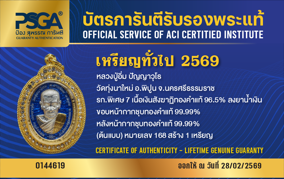 | ประเภท / Category | PSGA บัตรการันตีรับรองพระแท้ |