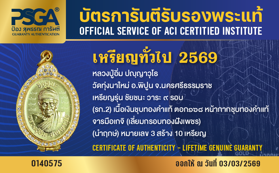 | ประเภท / Category | PSGA บัตรการันตีรับรองพระแท้ |