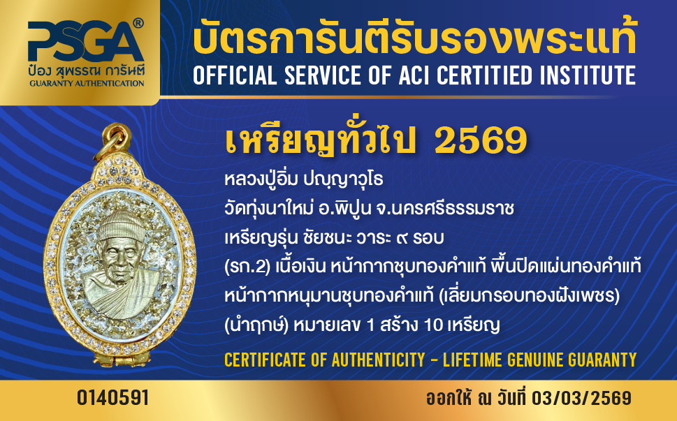 | ประเภท / Category | PSGA บัตรการันตีรับรองพระแท้ |