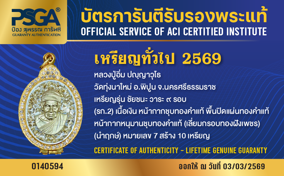 | ประเภท / Category | PSGA บัตรการันตีรับรองพระแท้ |
