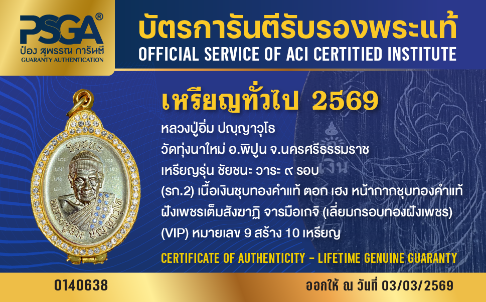 | ประเภท / Category | PSGA บัตรการันตีรับรองพระแท้ |