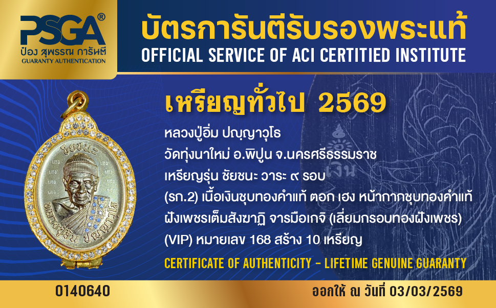 | ประเภท / Category | PSGA บัตรการันตีรับรองพระแท้ |