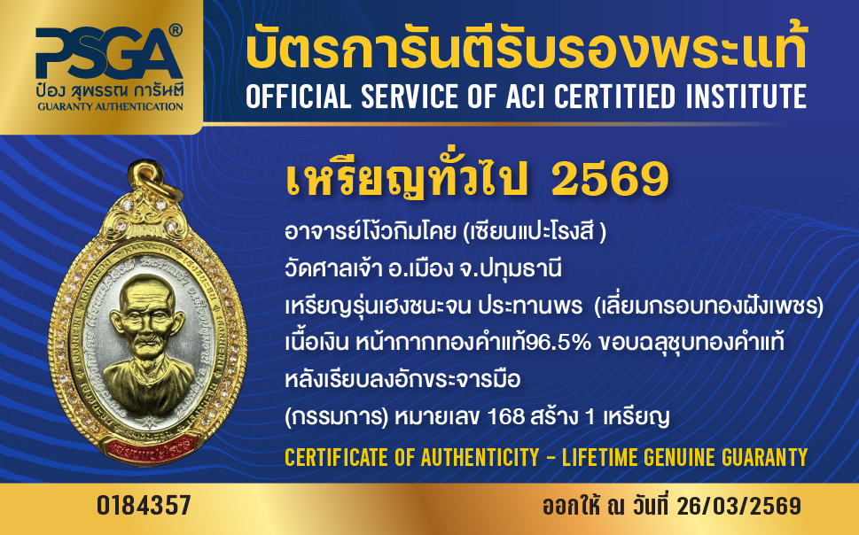 | ประเภท / Category | PSGA บัตรการันตีรับรองพระแท้ |