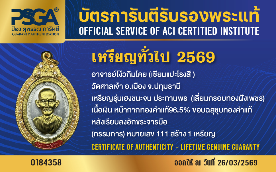 | ประเภท / Category | PSGA บัตรการันตีรับรองพระแท้ |