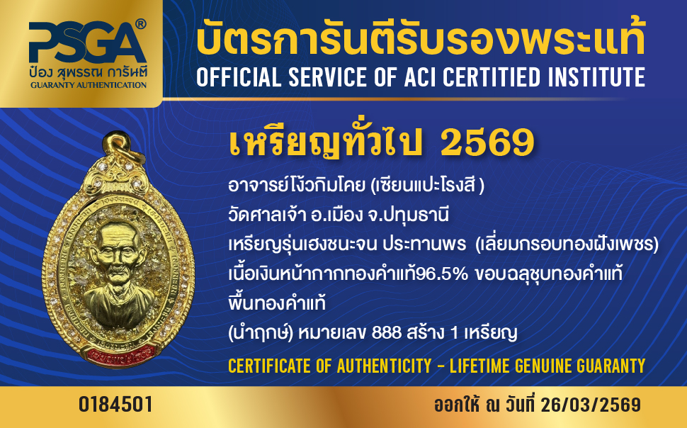 | ประเภท / Category | PSGA บัตรการันตีรับรองพระแท้ |