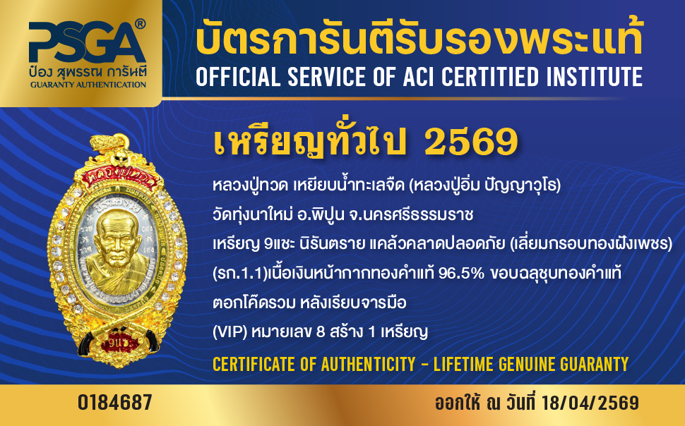 | ประเภท / Category | PSGA บัตรการันตีรับรองพระแท้ |