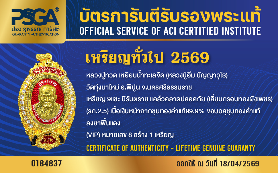 | ประเภท / Category | PSGA บัตรการันตีรับรองพระแท้ |