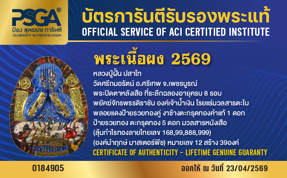| ประเภท / Category | PSGA บัตรการันตีรับรองพระแท้ |