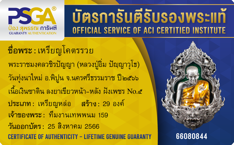 | ประเภท / Category | PSGA บัตรการันตีรับรองพระแท้ |