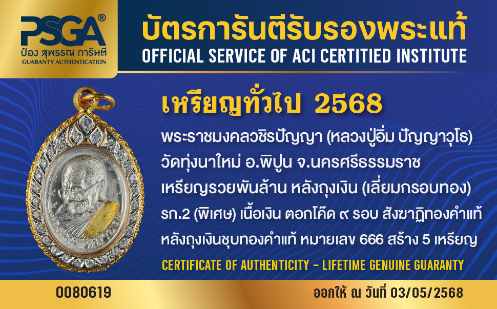 | ประเภท / Category | PSGA บัตรการันตีรับรองพระแท้ |