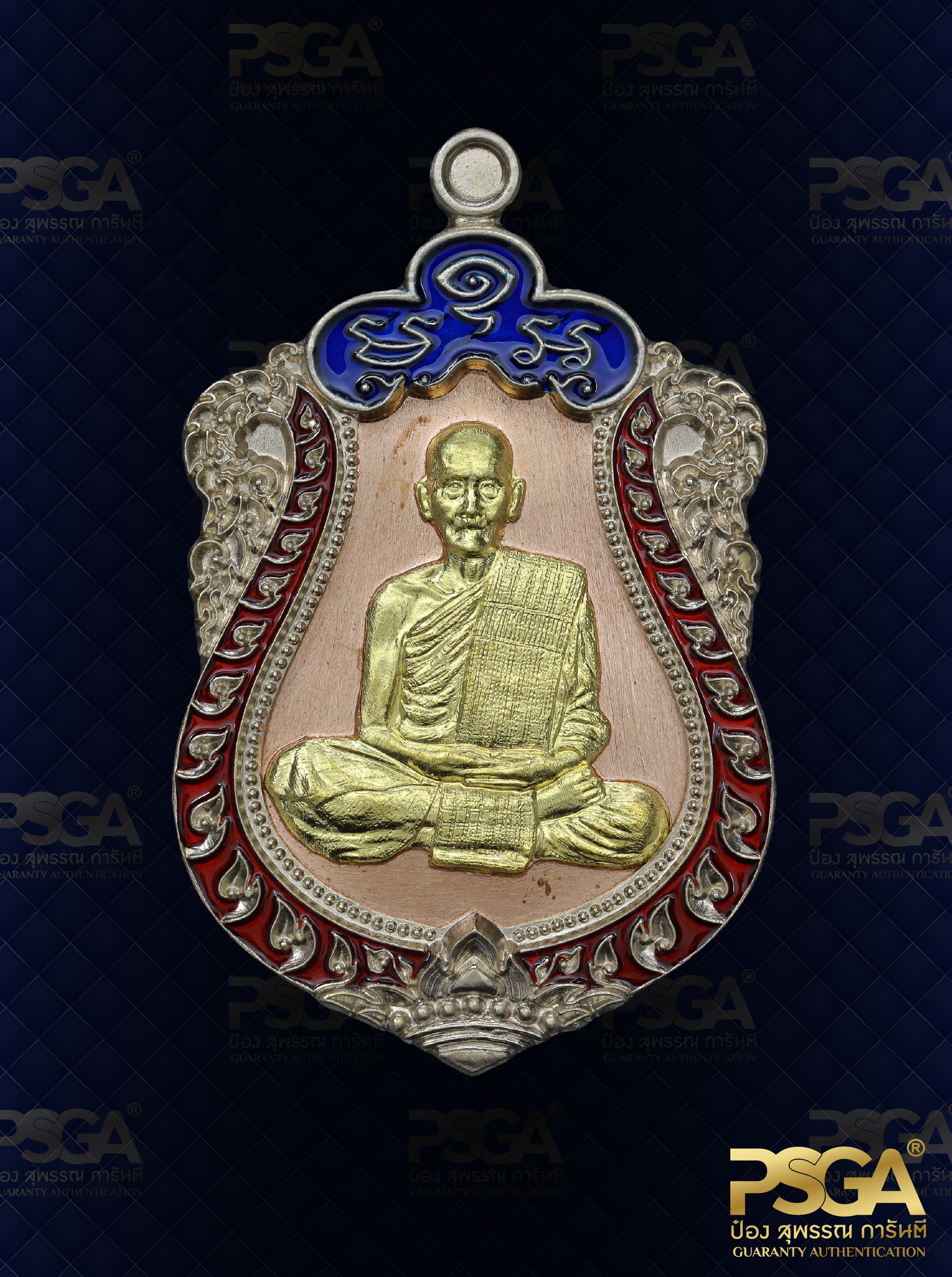 | เนื้อโลหะ / Composition | เนื้อทองแดง สอดไส้ องค์ปลอกลูกปืน กนกอัลปาก้า แผ่นหลังทองแดง (SE ต้นแบบ) ลงยา 2 สี (น้ำเงิน/แดง) ตอก 1/1 |