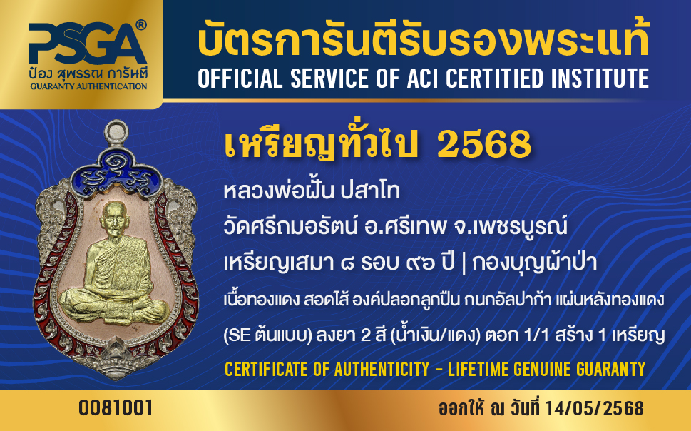 | ประเภท / Category | PSGA บัตรการันตีรับรองพระแท้ |